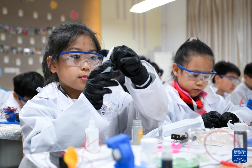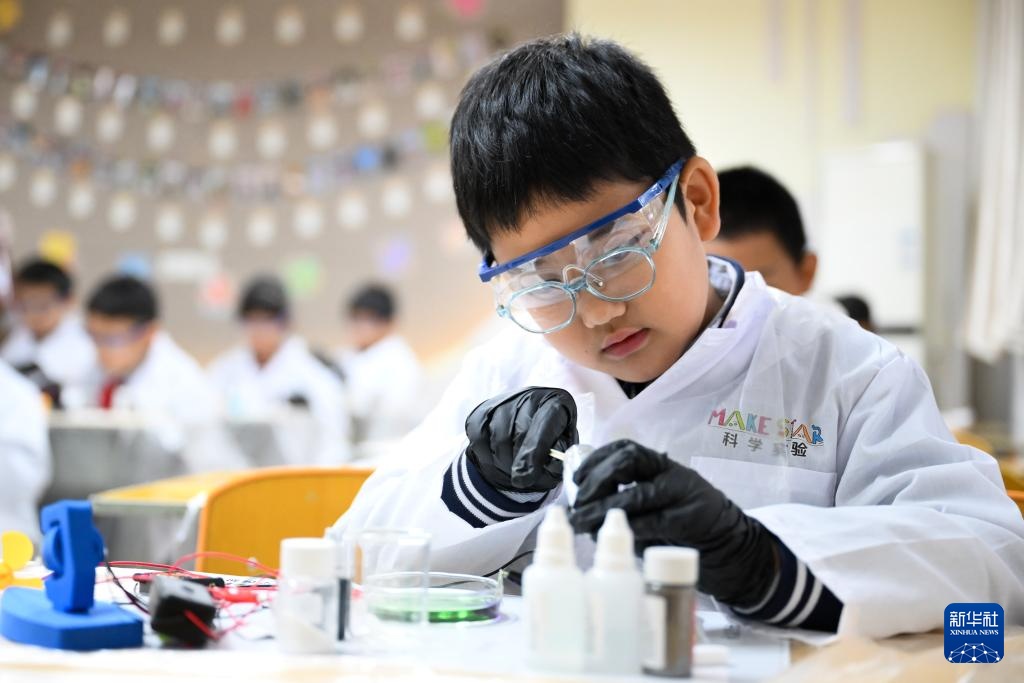 10月18日,学生在西安市新城区太华路小学参加科学实验操作赛。新华社记者 邹竞一 摄