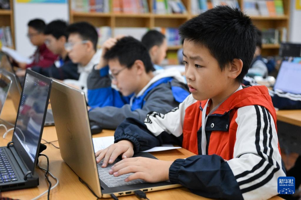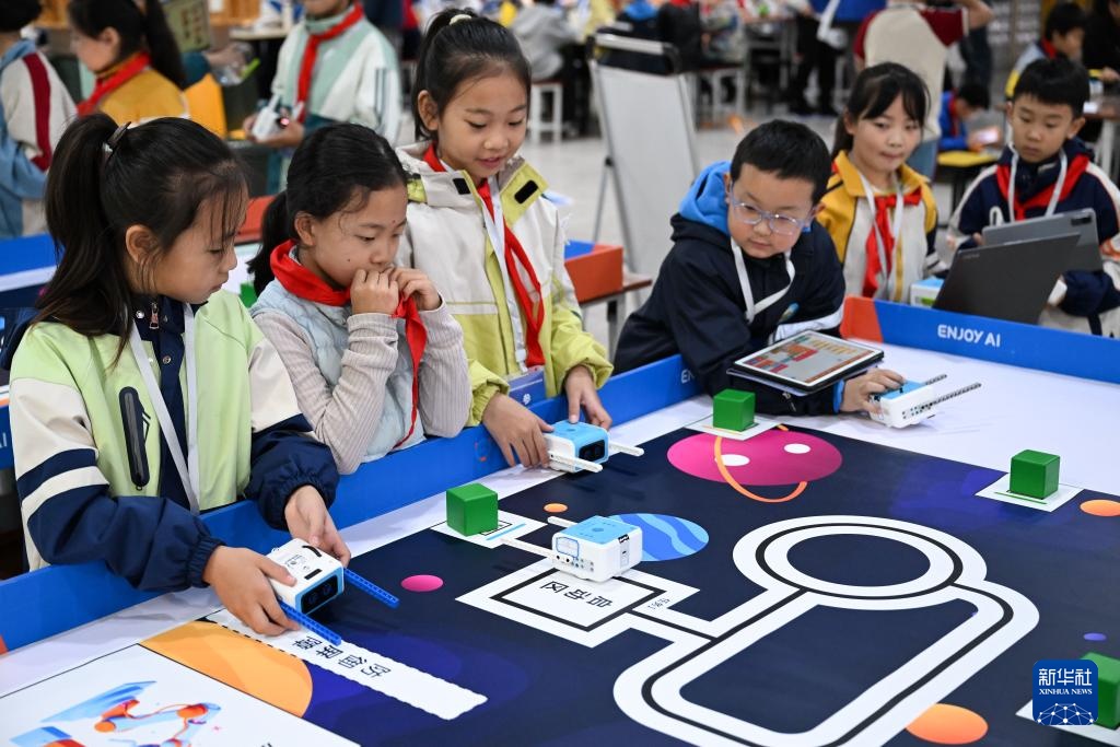 10月18日,学生在西安市新城区太华路小学参加人工智能创意编程挑战赛。新华社记者 邹竞一 摄